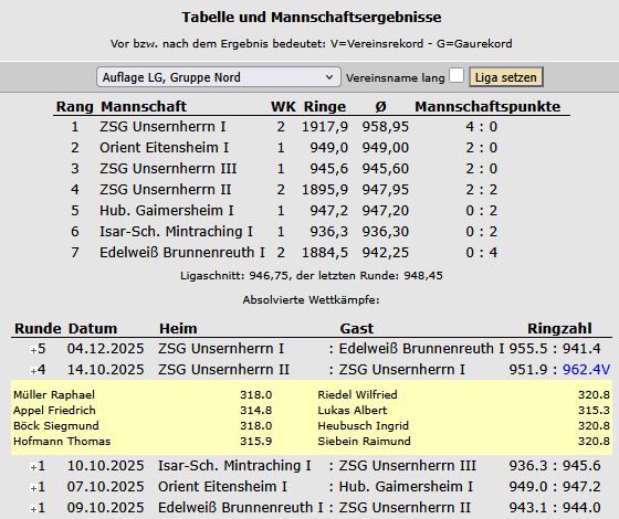 die LGA-ZSG Unsernherrn 1 mit 962,4 Ringen, den Rekord der LGA-ZSG 2 aus dem Jahr 2023.
